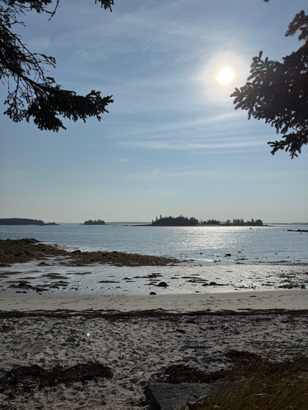 I learned this trip why it’s called Down East Maine. Evidently the winds here are from the southwest. So when the boats used to sail here from Boston in the late 1700s, they would go down wind and eastward. Now it’s used to refer to the entire area where we are from Ellsworth ME to the border. They also have 12’ tides here. At home in Florida we had a couple feet max. When the tide is out here, entire beaches form and islands are walkable.